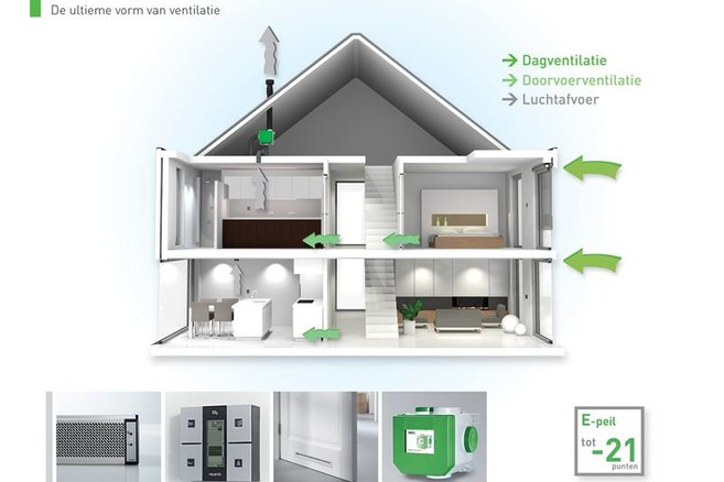 Leven in een huis zonder gedegen ventilatiesysteem zou met de huidige regelgeving dan ook nefaste gevolgen hebben: een ongezond binnenklimaat door de hoeveelheid CO2 die we uitademen, de opeenstapeling van vocht in de keuken en badkamer met schimmels tot gevolg…