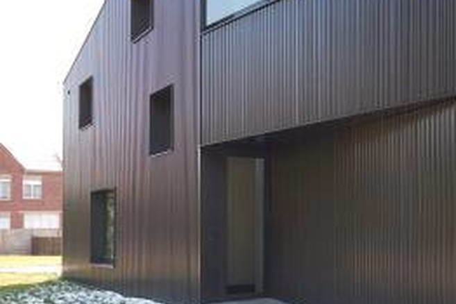 De opdrachtgevers stelden de klassieke eisen: kwaliteitsvolle woonruimten met veel daglichtinval voor een beperkt budget. Vanaf de eerste schetsen hebben de architecten rekening gehouden met de budgettaire beperkingen. Een compact volume met splitlevel indeling was hun eerste reflex. Daarna realiseerden ze besparingen bij de materiaalkeuze: ten eerste door te kiezen voor een metalen gevel- en dakbekleding en ten tweede door de binnenafwerking gedeeltelijk achterwege te laten en in plaats daarvan ruw beton zichtbaar te laten.Het dubbelleven van beton