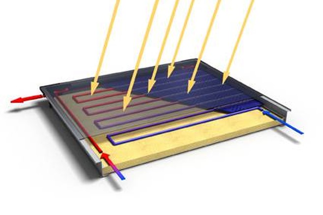 De collector kan op het dak of tegen de wand worden geplaatst. In deze collector lopen buizen die gevuld zijn met een vloeistof. De vloeistof loopt traag in een circuit van de collector naar de boiler of voorraadvat. In de collector slaat de vloeistof warmte op die ze vervolgens in de boiler via een warmtewisselaar (spiraal) aan het tapwater doorgeeft.