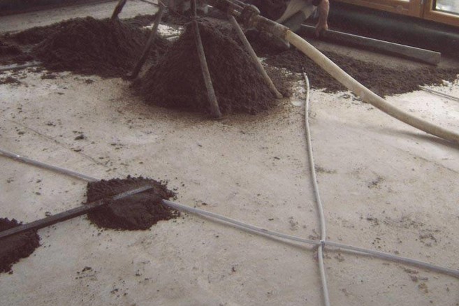 Zoals gesteld heeft een goede vloerisolatie een dikte van 10 cm of meer. Afhankelijk van de vloeropbouw kiezen we voor een drukvaste plaat (bijvoorbeeld EPS, piepschuim,…) onder de dekvloer (chape) of voor papiervlokken tussen een houten roostering.