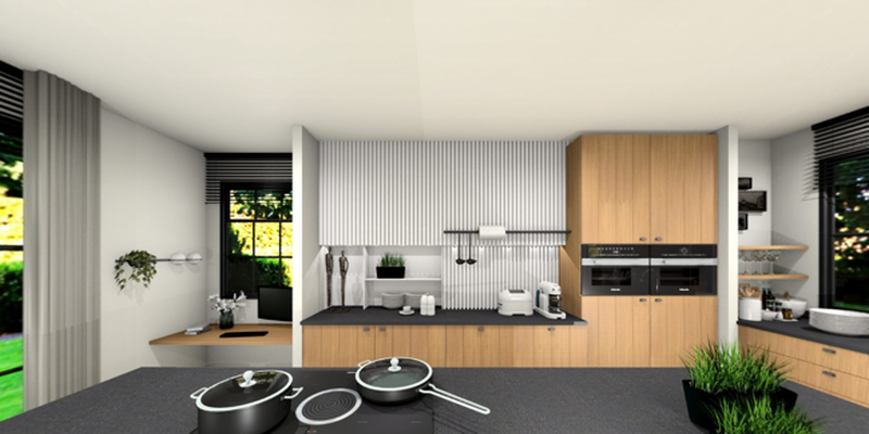 “Voor een eerste ontwerp volstaat een schets van de ruimte of een plan van je architect. Op basis daarvan en voortbouwend op ons gesprek maken we een eerste ontwerp. Dat tekenen we op de computer uit en vervolgens krijg je een fotorealistisch beeld in 3D te zien. Zo kan je rondkijken in je keuken in virtuele realiteit. Eens het ontwerp op punt staat, komen we natuurlijk langs om de keukenruimte perfect op te meten.”