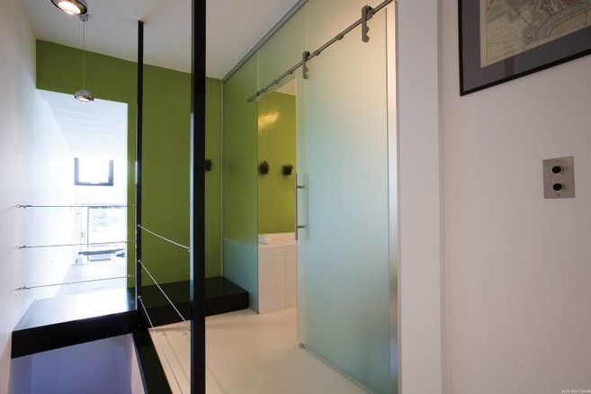 In de keuken kan gehard glas gebruikt worden als hittebestendig werkblad en/of als achterwand, tegelijk ook spatwand. Wanneer het werkblad, al dan niet met anti-kraslaag, overvloeit in de glazen achterwand zorgt de hoge glansgraad zelfs voor een weerspiegeling die de keuken optisch groter doet lijken. Naast het strakke design zijn glazen spatwanden ook heel gemakkelijk te onderhouden en heel hygiënisch; er trekt namelijk geen vuil in. Door het minimum aan voegen en dus minimale verkleuring krijgen bacteriën evenmin een voedingsbodem. Glazz Interiors maakt alle glasbladen op maat waarbij automatisch uitsparingen worden voorzien voor stopcontacten, schakelaars, verlichting, spoelbak, fornuis… Zo krijgt het geheel een modern en strak design.Troeven van gehard glas