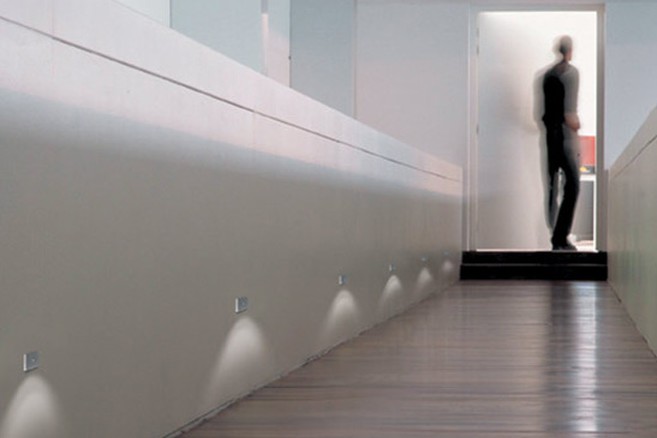 Ook oriëntatieverlichting is mogelijk via wandarmaturen. Deze verlichting geeft net voldoende licht, zodat je je ook in het ‘donker’ kunt oriënteren. Maak hiervoor gebruik van armaturen met LED’s, want hun verbruik is bijna nihil en ze hebben een levensduur van meer dan 10 jaar!