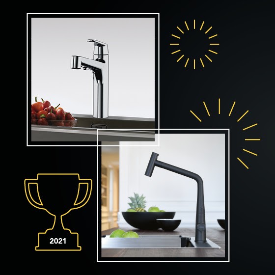 Zowel de jury van de IF Design Awards als die van de Red Dot Awards heeft het innovatieve ontwerp van de Icon-kraan rijkelijk bekroond. Icon's vorm en technologie veroverden beide jury’s, als de kraan van de toekomst. Functioneel, dynamisch en vernieuwend dankzij de uittrekbare en zwenkbare uitloop én de dubbele straal.
