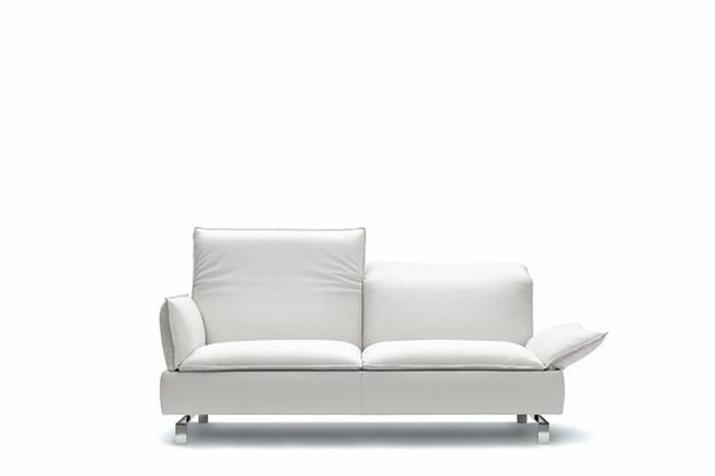 De sofa – die luistert naar de naam Elico - heeft een opklapbare rug, die als hoofdsteun dienst doet. Dat is een functie die zeer geapprecieerd wordt, als we kunnen afgaan op het succes van andere modellen van Anita Schmidt uit de Durlet-collecties die met een hoofdsteun worden aangeboden.