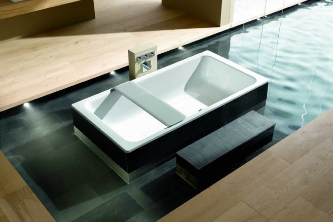 Onze badkamer wordt hoe langer hoe meer een ontspanningsruimte, en het nieuwe bad Bassino van producent Kaldewei gaat helemaal met die trend mee. Het bad meet maar liefst twee bij één meter, waardoor baders onbelemmerd kunnen drijven in het water van hun eigen badkameroase.