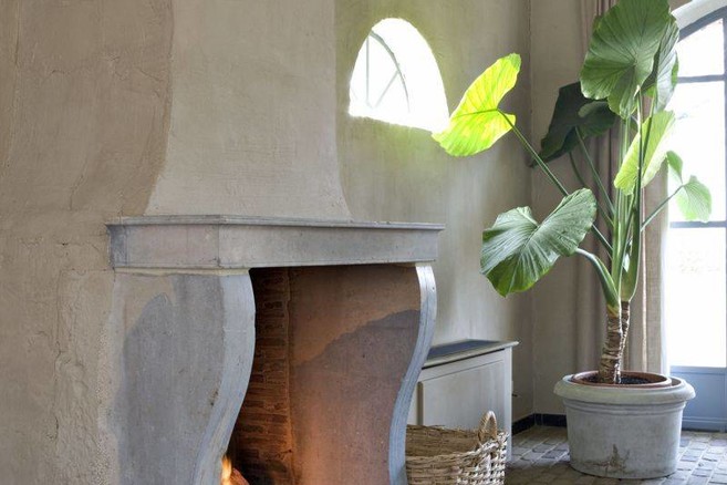 Antieke haardplaten worden ook graag gebruikt als decoratief element in bijvoorbeeld een dampkap.