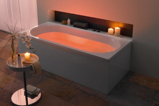 Van verlichting in een zwembad kijkt niemand nog raar op. Kaldewei introduceert nu ook drie nieuwe verlichtingssystemen voor het bad in jouw en mijn badkamer. Zo kan je je onderdompelen in een zee van licht en kleur.