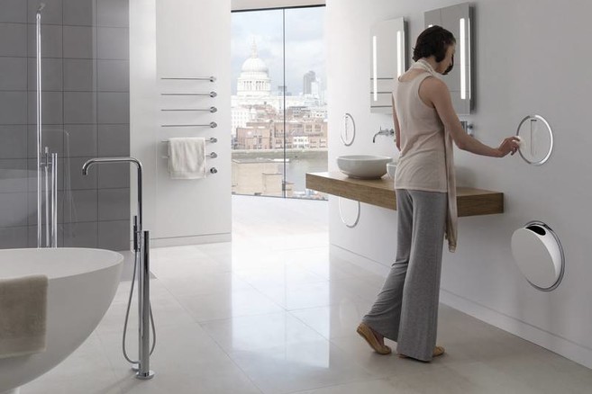 Vanaf nu behoort ook de Round Series tot het gamma van Vola. In Brussel kan je de ronde ingebouwde papieropvangbak en tissuehouder ontdekken. De ring om het product heen is beschikbaar in hoogglans chroom en roestvrij staal en de frontpanelen in allerlei kleuren. De afvalbak is verkrijgbaar als inbouwversie die met hand- of kniedruk te openen is of als ophangversie.