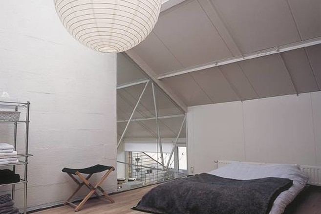 Annette straalt wanneer ze over haar woning vertelt. “Ik ben me er wel van bewust dat ruimte snel went. Meer dan vroeger krijg ik in andere woningen snel een benauwd gevoel.” Helemaal onbegrijpelijk is dat niet wanneer ik de indeling en aankleding van de loft van naderbij bekijk. Buiten het toilet is er geen enkele kamer die is afgesloten van het leefgedeelte. De muren van de slaapkamers zijn vervangen door glazen wanden, terwijl de rest van de loft helemaal open is. Door de trapsgewijze opbouw van de drie verdiepingen – de bureauruimte ligt een halve verdieping hoger dan de slaapruimtes en de logeerkamer ligt een halve verdieping hoger dan de bureauruimte – ontstaat er toch een minimale vorm van privacy in de kamers. “Ons dochtertje is nu 3,5 jaar oud”, vertelt Annette. “We hebben er wel rekening mee gehouden dat ze op latere leeftijd een eigen plekje wil. Daarom kan de logeerkamer op de bovenverdieping met een kleine ingreep volledig worden afgesloten van de rest van de loft.”