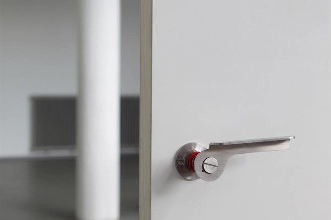 Neem nu de deurklink Shut the Door, Have a Seat. Die haalt het mechaniekje dat normaal in de deur zit naar buiten en versmelt het harmonieus met de klink zelf.