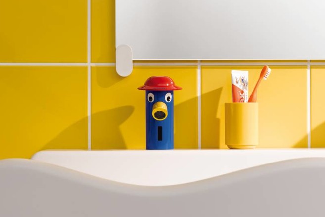 Water is vaak een leuk spelgegeven voor kinderen, maar hier loert zeker en vast verbrandingsgevaar. Het belangrijkste in de kinderbadkamer is dan ook een thermostatische kraan die de temperatuur op 38° blokkeert. Om te vermijden dat het water blijft lopen, kun je aan een elektronische kraan denken die enkel stroomt als het kind er zijn handen onder houdt.Badkamermeubilair op kinderhoogte