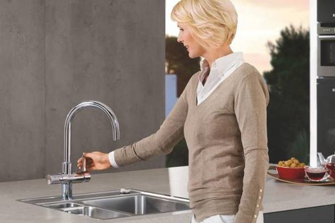 Eén kraan voor koud, warm én kokend water! Dat design en techniek goed samengaan, bewijst Grohe met Grohe Red. Een unieke innovatie die op ieder moment koud water, warm water en kokend water kan produceren. Pasta en thee waren nog nooit zo snel klaar. Waterkokers zijn vanaf nu overbodig, met een forse ruimtebesparing op het werkblad in de keuken als resultaat.