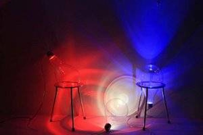 De vrij recente LED-technologie combineer ik hier met een herkenbaar object, de badmintonshuttle. De schaduwenvormen zorgen voor een verrassend effect.