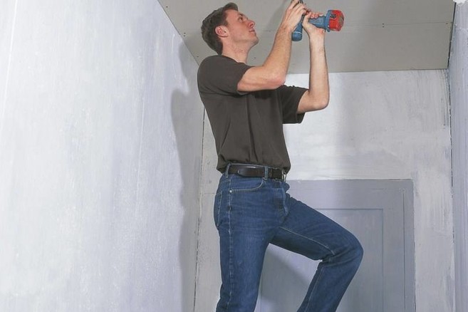 - Eventueel moet je de draagstructuur aan de muren bevestigen en niet in het plafond
