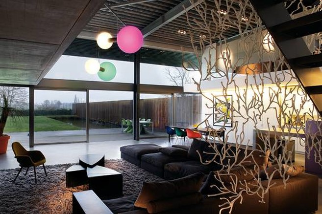 Bij sfeerverlichting denken we vooral aan het decoratieve element dat een mooi gevormd toestel toevoegt aan de ruimte en dat er als het ware mee rijmt, of net boeiend contrasteert. Denk aan een prachtige kristallen luchter, aan een boeiende abstracte vorm met licht in, aan lampenkappen met mooie patronen, een te gekke plastic vorm, maar evengoed aan boeiende ritmes en composities met een reeks van dezelfde armaturen.Combinatie