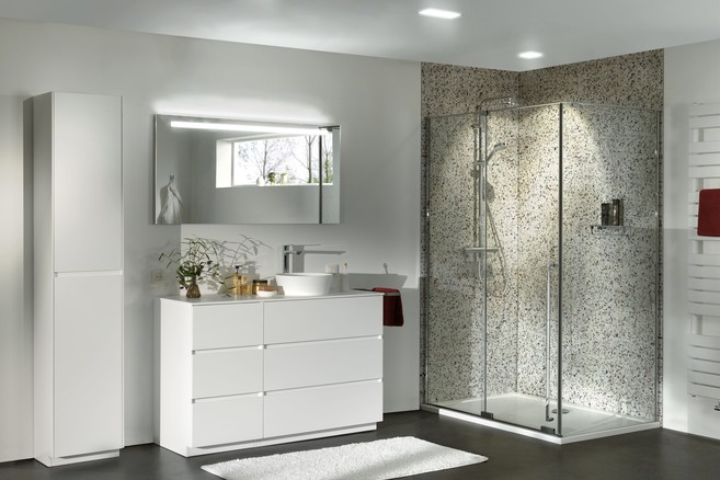 - Opvallend is het vermijden van naden of het gebruik van siliconen. Zo kan zich hier geen vuil ophopen