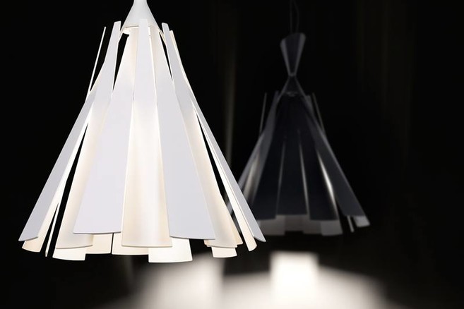 Metronome is ontstaan uit de samenwerking met de Belgische modeontwerper Tim Van Steenbergen. Startpunt was het bestaande model Husk, een pendel met een sobere, strakke lampenkap in een zuivere, conische vorm. Niet zo voor de lampenkap van de Metronome. Van Steenbergen heeft, zo lijkt het, de schaar gehanteerd. Smalle stroken van onder tot boven, in zwart, wit of rood aluminium, of in aluminium met een kurkstructuur, zorgen voor een mooi spel van licht en schaduw. Ook interessant: je kunt de stroken individueel kantelen, om een persoonlijke toets toe te voegen.