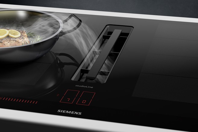 Siemens Home Appliances presenteert kookplaten van de nieuwe generatie met geïntegreerde ventilatie: het inductionAir System. De ideale kookpartner dankzij zijn vlakke design, zuivere lijnen, spotgemakkelijke bediening en reinigingssysteem. Deze kookplaten bestaan in diverse én innoverende formaten: voortaan is het – voor het eerst in België – mogelijk om naast het klassieke formaat met een breedte van 80 cm, een kookplaat met geïntegreerde ventilatie van 70 cm te installeren in een uitsparing die is bedoeld voor een kookplaat van 60 cm.