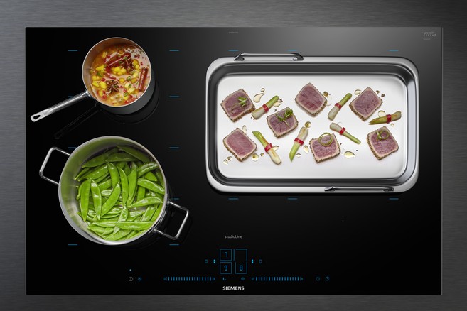 Het inductionAir System staat ook voor uitstekende flexibiliteit in de keuze en positionering van keukengerei. De modellen met een breedte van 80 cm zijn uitgerust met Siemens' flexInduction systeem dat twee naast elkaar liggende kookzones kan samenvoegen tot één groot oppervlak. Om het even of het om grote grills of potten gaat: warmte wordt alleen geproduceerd waar ze nodig is!