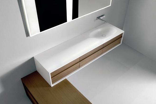 Elk detail roept elegantie op: spiegel, wasbakken met zachte en sensuele vormen, voet en laden die volledig verdwijnen. De collectie is verkrijgbaar in verschillende houtafwerkingen met modules in de volgende afmetingen: