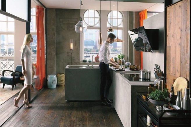 Vergeet de klassieke schouwdampkap. Hier komt Mythos Plus, de schouwloze wanddampkap met zwart- of witglazen frontpaneel die Franke lanceert. Het zwevende afgeschuinde glazen paneelvlak waarachter alle techniek zit weggewerkt, geeft je alle ruimte om ongehinderd te kokerellen zonder het minste risico dat je je hoofd stoot.