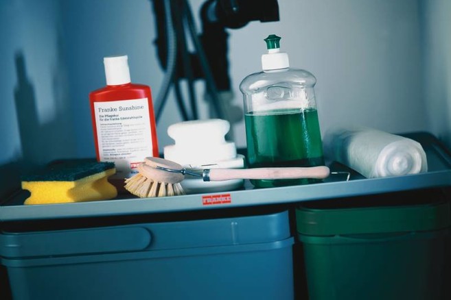 De afdekplaat van de Sorter 700 kan gebruikt worden als extra opbergruimte voor afwasproducten.