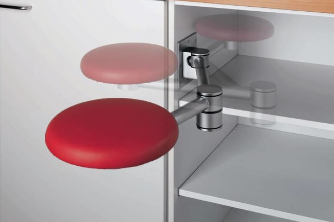 Het gamma omvat onder meer een liftmechanisme voor de muurkasten in de keuken. Een elektronisch mechanisme stuurt de kasten naar boven en naar beneden, en zorgt zo voor een beter bereik, voor iedereen in het gezin.