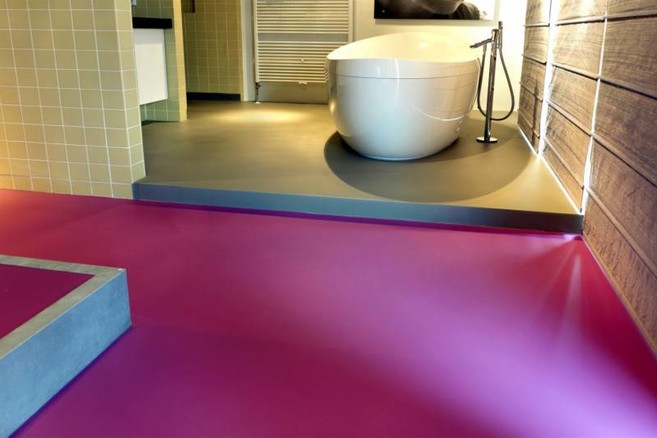 - een gietvloer kan in verschillende kleuren en designs worden geplaatst.