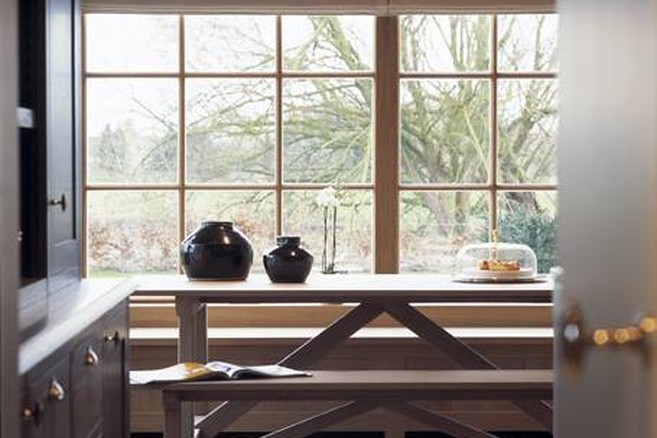 Een eikenhouten plankenvloer versterkt de band tussen de verschillende woonvertrekken op de benedenverdieping. Hij kreeg zijn kleur volgens de traditionele methode, door een behandeling met bleekwater.