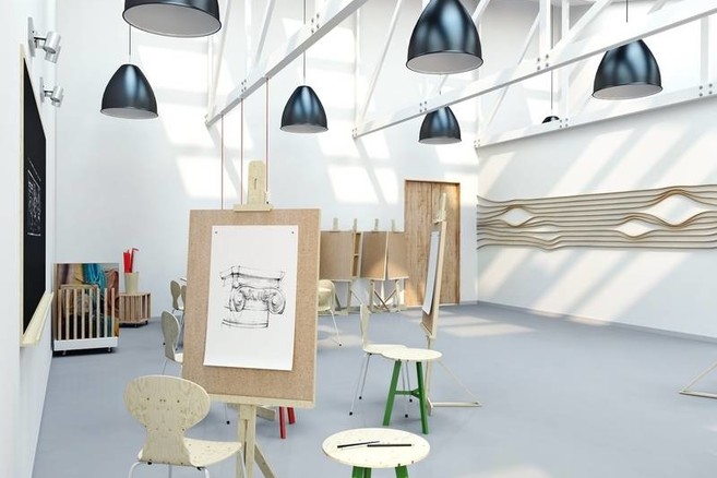 - Wat in deze kamer zeker kan en mag, is een artistieke invulling. Zorg voor een plek waar je je werk kunt etaleren, dat maakt het motiverend. Een rail aan het plafond met verschuifbare spots is ideaal om de geëtaleerde kunstwerken flexibel uit te lichten.