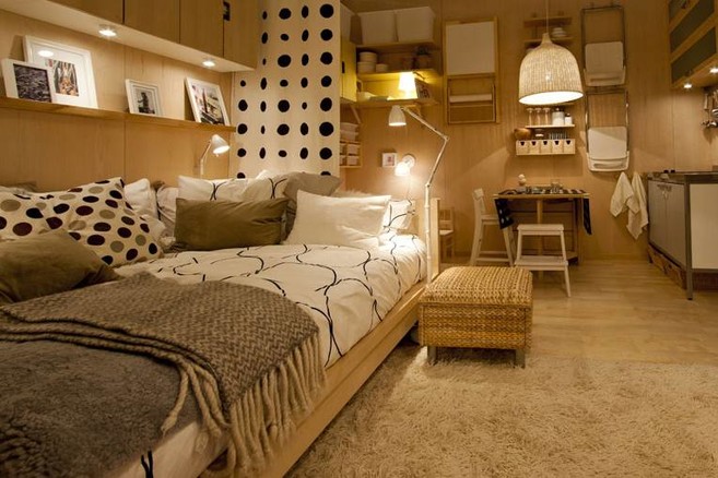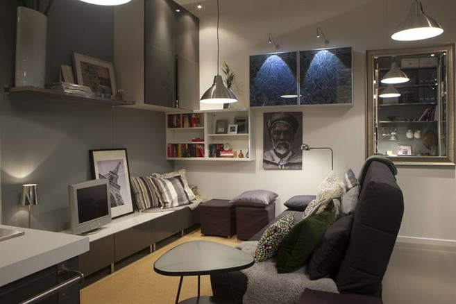 Deze multifunctionele mini-woning is een woonkamer, eetkamer, leefruimte, slaapkamer, opbergruimte en keuken ineen: alleen niet allemaal tegelijk.
