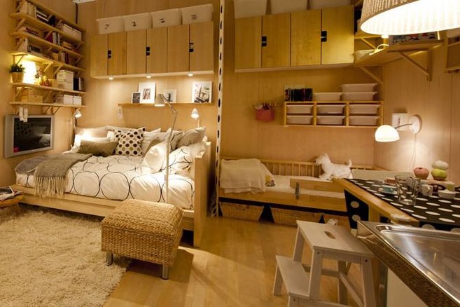 - Lappen stof dienen als kamerverdeler wanneer het kind gaat slapen om het licht af te schermen