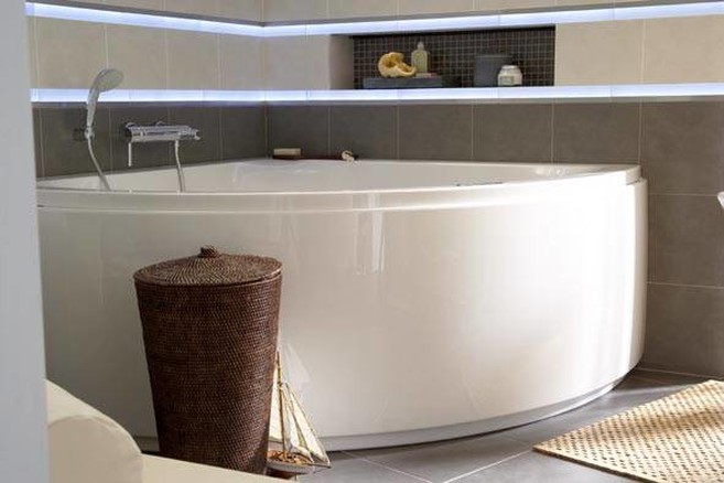 De brede badranden lenen zich uitstekend voor de installatie van kraanwerk en bieden plaats aan badaccessoires.