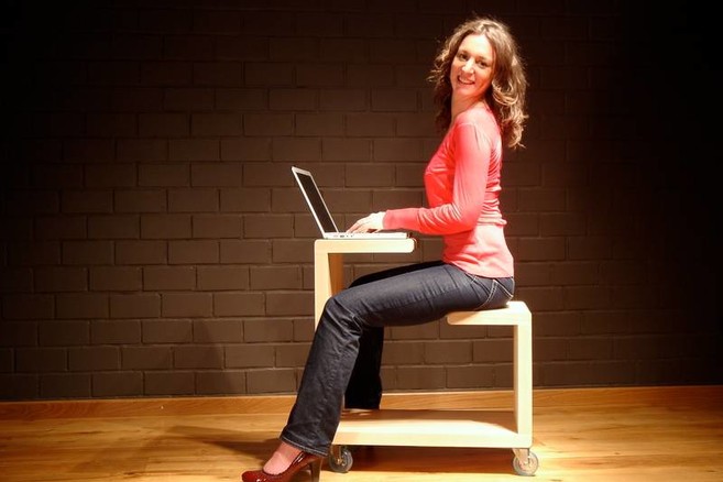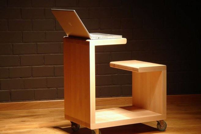 De i-Desk, een mobiel zitmeubel met werkblad.