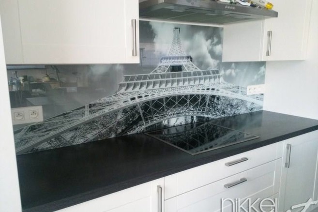 Keuken foto achterwand is een zeer praktische en esthetische oplossing om bedrukt glas te plaatsen tussen het aanrecht en de hangkasten of tussen de kookplaat en de afzuigkap. Het is geen probleem om gaten te maken voor stopcontacten. Omdat het glas gehard is, kunnen de glaspanelen gebruikt worden bij kookplaten of gaspitten, waar ze worden blootgesteld aan sterke warmteverschillen. Foto spatwand kan zorgen voor die warme, aangename sfeer in de keuken en schoonheid die meteen opvalt.