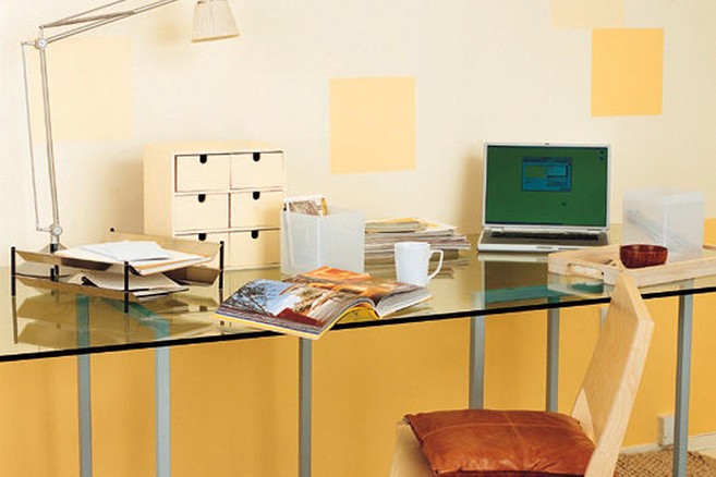 Een bureau is per definitie een werkplaats, maar hoeft de inrichting daarom saai te zijn? Helemaal niet! Kies om te beginnen een vrij neutrale basiskleur. Daar voeg je best een actieve of stimulerende kleur aan toe. Plaats deze kleur echter niet in het volle zicht van je werkplaats. De kunst is immers om actief en geconcentreerd te blijven, zonder teveel visuele prikkels. Plaats een accentkleur dus bij voorkeur achter je, of op één van de zijwanden.