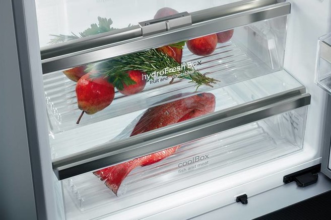 De hydroFresh-groentelade is uitgerust met een hermetisch afgesloten vochtregelsysteem dat toelaat om de vochtigheid te regelen en temperatuurschommelingen te vermijden. De lade heeft bovendien een gegolfde bodemstructuur die voorkomt dat groenten en fruit in condenswater komen te liggen. Daardoor blijven ze dubbel zo lang vers en behouden ze hun voedingswaarde.