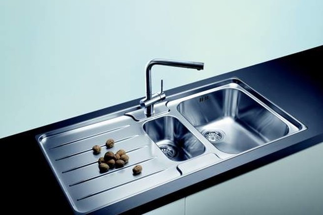 De 1 m brede en 50 cm diepe spoeltafel is uitgerust met een ruime, diepe spoelbak, een klein spoelbakje en een verzonken afdruipzone die naar wens links of rechts kan worden voorzien. De spoeltafel past niettegenstaande haar royale afmetingen in een kast van 60 cm breed.