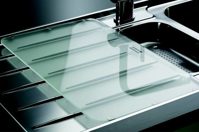 Voor optimaal gebruikscomfort kan de spoeltafel voorzien worden van 3 praktische accessoires zoals de glazen snijplank die op de spoelbak past en zo extra werkruimte verschaft om bijvoorbeeld groenten te snijden. De vaatwerkkorf kan je gebruiken om natte vaat te laten uitlekken. Speciaal voor de kleine spoelbak ontwikkelde Franke een roestvrijstalen inzetmand waarin je groenten of fruit kan spoelen. De mand is ideaal om deegwaren rechtstreeks in af te gieten.