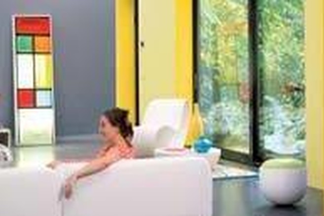Benadruk architecturale elementen door te spelen met twee tinten van dezelfde kleur. Bij de eerste foto werd gekozen voor een diep Rebels geel op de ramen en vrolijk Retrogeel voor de muren. Je haalt er meteen de lente mee in huis. Wolkenkrabber, tenslotte, doet het goed op hoge muren met veel lichtinval.