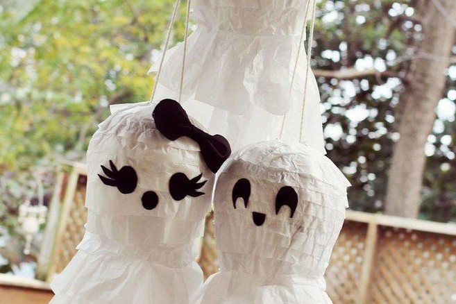 Maak je eigen spook. Hoe?- Neem een oud wit laken of kussensloop.