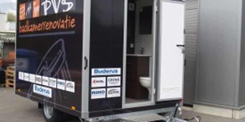 PVS is gespecialiseerd in badkamerrenovaties. Het bedrijf kent dus als geen ander de ongemakken waar de klanten mee geconfronteerd worden als de vaklui de badkamer haar metamorfose geven. Dat zette ze in Hamont-Achel aan het denken. Het antwoord is een badkamer op wielen. De mobiele badkamer wordt tijdens de werken netjes voor de deur van de klant geplaatst. Die kan er dan rustig een douche nemen, de tanden poetsen of naar het toilet gaan. De mobiele badkamer is rijkelijk voorzien van stopcontacten, elektrische verwarming en verluchting.