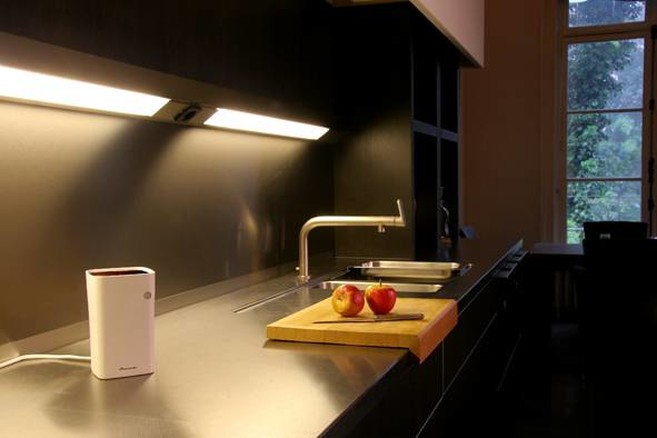 Het elektrische circuit in huis werkt als een geluidskanaal dat de muziek via het geluidsstation overbrengt van het ene stopcontact naar het andere, van de ene kamer naar de andere. Het station kan ook bediend worden met behulp van afstandsbediening via een van de grote Network Speakers.