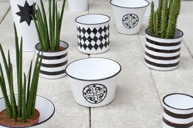 Word je van emaillen voorwerpen of felgekleurd aardewerk nostalgisch? Terug naar grootmoeders tijd of het zonnige zuiden? Je kunt beide sferen in huis halen met de nieuwste collecties bloempotjes van Serax. In wit email, afgewerkt met een zwart biesje en gedecoreerd met een leuk logo. Het aardewerk kreeg hele felle kleuren die elk interieur opvrolijken. Vullen met een cactus of andere vetplant en je waant je meteen in Mexico.