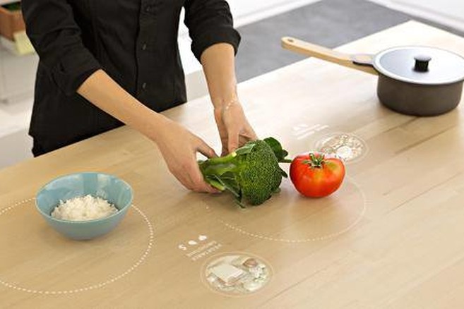 Mogelijk hebben enkele Nederlanders de slimste keukentafel ooit ontwikkeld. Een groep studenten van de Eindhoven University of Technology en Lund University bedachten ‘A Table for Living’. Elk ingrediënt dat je op de tafel legt, herkent de tafel.Daarna wordt het pas echt interessant, want dan geeft de tafel je andere ingrediënten, die erbij passsen, plus een volledig recept. Dit alles wordt geprojecteerd op de tafel.