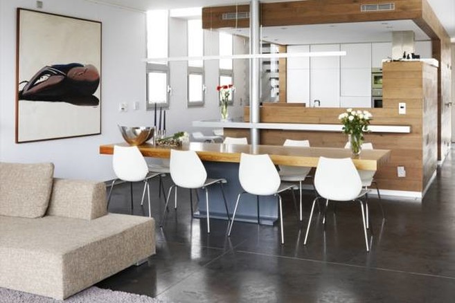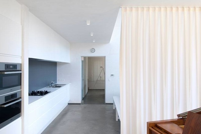 Een open keuken maakt voor een groot deel of volledig deel uit van de leefruimte. De keuken loopt gewoon over in de eet- of zithoek.