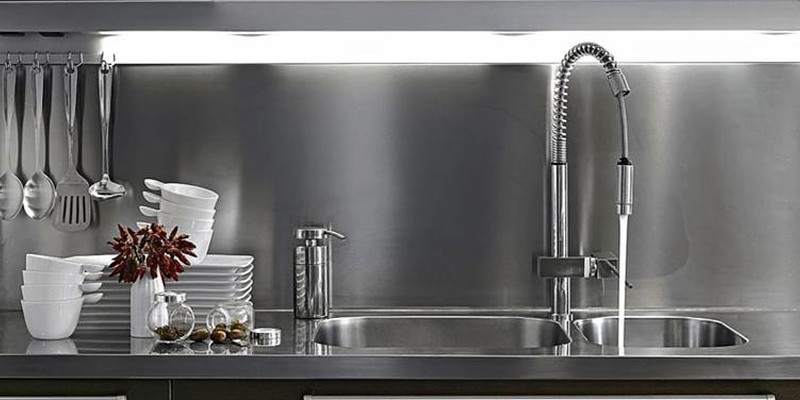 Voor de mensen, die van strak houden, is een industriële look the way to go. Een optie is een spatwand in inox. Dat is roestvrij staal dat tegen vocht en vet kan. Daar tegenover staat wel dat elk vuiltje heel goed te zien is. Een vette vinger zal zo altijd zichtbaar blijven, tot je er met een microvezeldoekje over gaat.