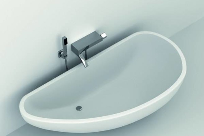De Splash lijn van Van Marcke heeft als rode draad het gebruik van mineraalcomposiet als materiaal voor hun baden en wastafels. De focus ligt duidelijk op een esthetisch design dat een specifiek publiek zal aanspreken.