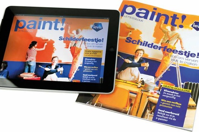 In een tijd dat de tablets hot zijn en dat steeds meer magazines en kranten naast een papieren versie ook een digitale versie op iPad uitbrengen, kon Levis als hét innovatieve verfmerk niet achterblijven. De paint! App - gratis verkrijgbaar in de iTunes-store - is een interactief magazine geworden dat de grenzen aftast van wat iTunes vandaag te bieden heeft. Verwacht dus geen pdf van het gedrukte magazine, maar wel een geheel nieuw vormgegeven multimediaal iPad-magazine dat veel extra tools biedt.